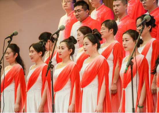 展演当天,在毓秀楼和声堂的舞台上,建筑与艺术学院合唱团以饱满的精神状态、默契的和声配合,将《忆秦娥·娄山关》的磅礴气势与深沉情感展现得淋漓尽致。指挥刘宇田老师精准把控节奏,带领成员们用激昂的歌声再现革命岁月的峥嵘,用真挚的情感传递新时代的奋斗力量;钢琴伴奏申婷婷老师的旋律与合唱声部相得益彰,为整首作品增添了丰富的艺术层次。当最后一个音符落下,现场掌声雷动,我院凭借稳定的发挥与深厚的情感表达,最终获得9.79分,以全场最高分的优势斩获一等奖。