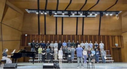 本次参演的合唱团由学院各工会小组会员自愿报名、民主推荐组建而成,涵盖教学科研、行政服务等多个岗位的教职工,最终形成以声乐和理论老师为骨干,以各系、各小组推荐老师为主体的学院合唱团。备赛期间,合唱团成员们面临着教学、科研、艺术类学生复试、研究生推免复试、奖学金评定等各项工作,但大家始终以高度的责任感与使命感投入其中——白天,他们是三尺讲台上传道授业的师者、实验室里潜心钻研的学者;业余时间便化身合唱团成员,在排练室里克服时间冲突、兼顾家庭与工作的困难,反复打磨每一个音符、每一处和声。从发声技巧的校准到情感表达的统一,从指挥与伴奏的配合到舞台仪态的调整,每一个细节都凝聚着团队的汗水与心血,也彰显着建筑与艺术学院教职工团结协作、精益求精的优良作风。